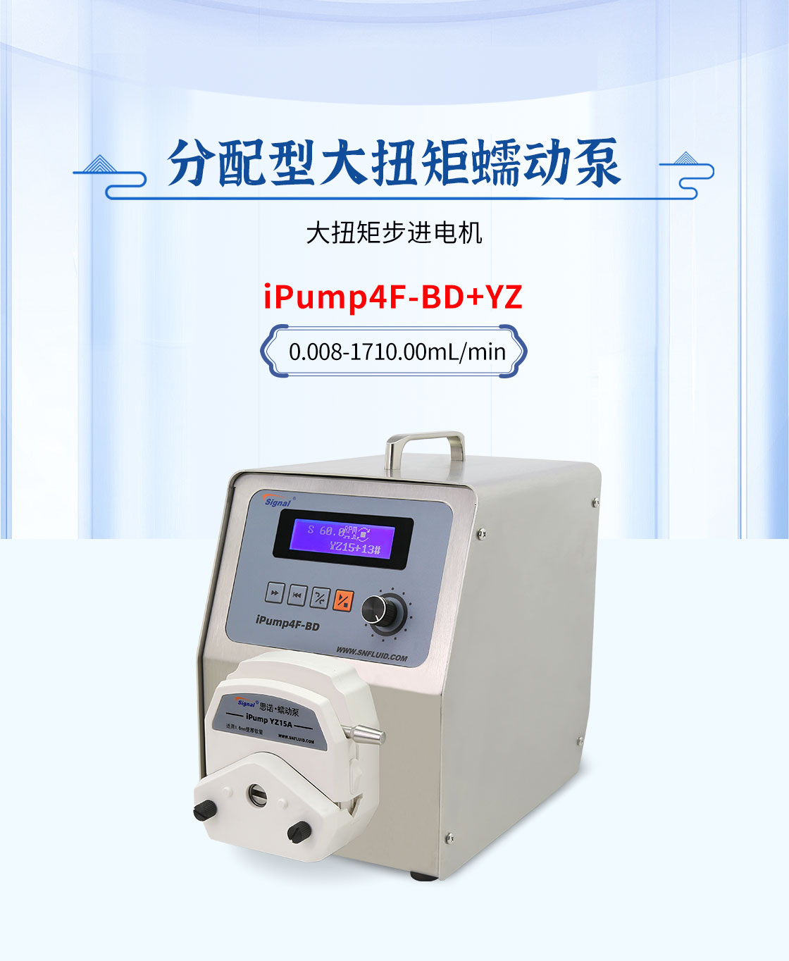 2.大扭矩步進電機驅動,適合多泵頭串聯使用;