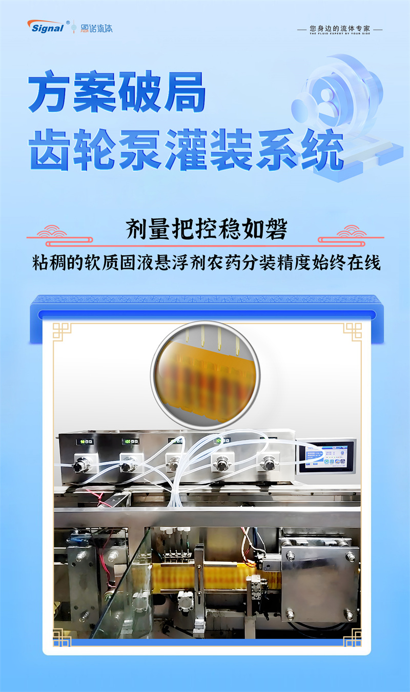 一位長期使用我司蠕動泵灌裝水劑農藥的老客戶,因新開發粘稠的軟質固液懸浮劑而面臨設備瓶頸,我們迅速響應,為其量身推薦了更優解決方案——高性能齒輪泵灌裝系統。