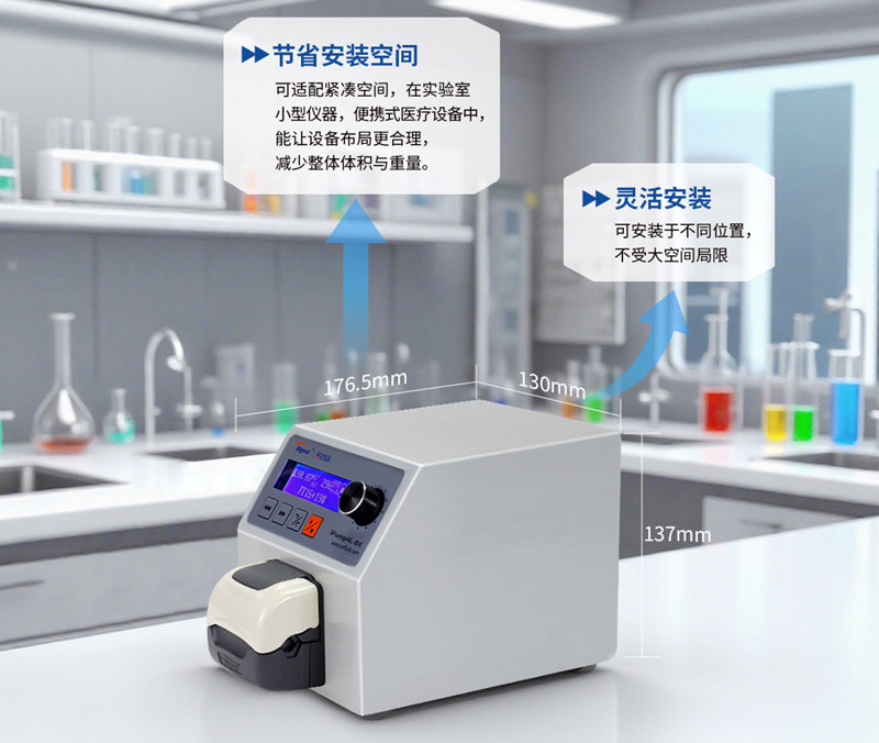迷你玲瓏蠕動泵外型小巧,可適配緊湊空間,在實驗室小型儀器、便攜式醫療設備中,能讓設備布局更合理,減少整體體積與重量。