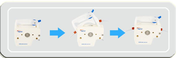 3.一次將裝好軟管的卡片放入泵體,完成軟管安裝。