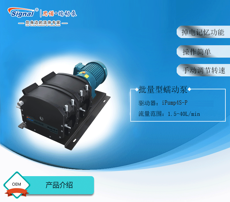 ? ? ?1.流量范圍:1.5-40L/min ? ? ?2.彈性壓管結構,軟管壽命長,非常適合大流量液體傳輸 ? ? ?3.免維護交流減速電機驅動,變頻器調節轉速 ? ? ?4.全金屬泵頭,高精度,更可靠 ? ? ?5.高防護等級,更適合惡劣環境中使用